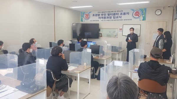 경기남부보훈지청 제대군인지원센터가 운영하는 전문 위탁교육 ‘드론 조종자 국가자격증’ 취득 과정이 5일 안산 플라이존드론교육원에서 시작됐다. 국가보훈처에서 교육비를 지원하는 제대군인 위탁교육 과정의 하나인 이번 교육은 10월5일부터 10월23일까지 주5회(매일) 진행될 예정이며 드론 관련법규 이해 및 이론, 실습을 통한 국가 자격증 취득을 위한 과정으로 구성되어 있다.