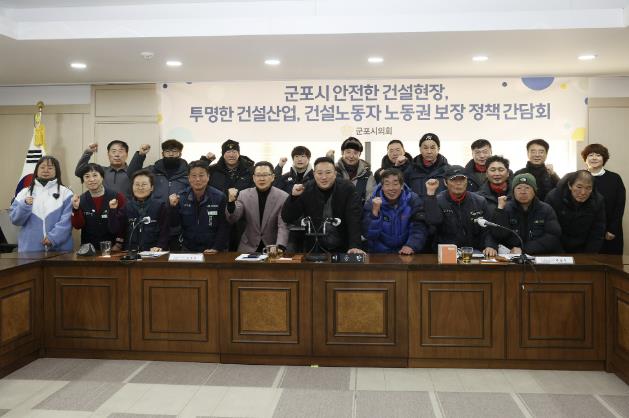| ▲ 군포시의회는 9일 의회 문화강좌실에서 ‘군포시 안전한 건설현장, 투명한 건설산업, 건설노동자 노동권 보장 정책 간담회’를 개최해 건설노동자 기능등급제 도입과 활성화 방안 등을 논의했다. |