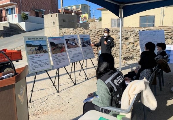 완도해양경찰서(서장 박제수)는 지난 11월 12일 완도 명사십리 해수욕장에서 지자체 및 관계기관 담당자 등 7개 기관과 민간 자원봉사자 약 25명이 참가하여 해안방제교육‧훈련을 실시했다고 밝혔다.