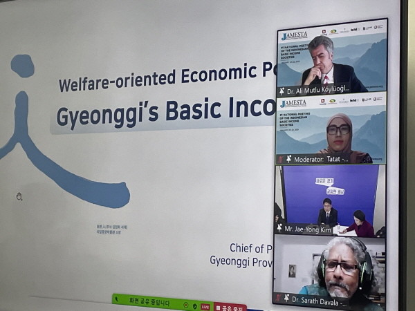 김재용 경기도 정책공약수석은 20일부터 22일까지 3일간 온라인으로 진행되는 ‘2021 인도네시아 기본소득학회 국제회의’에서 현지시각 20일 19시 ‘복지적 경제정책 경기도 기본소득’을 주제로 발표했다.