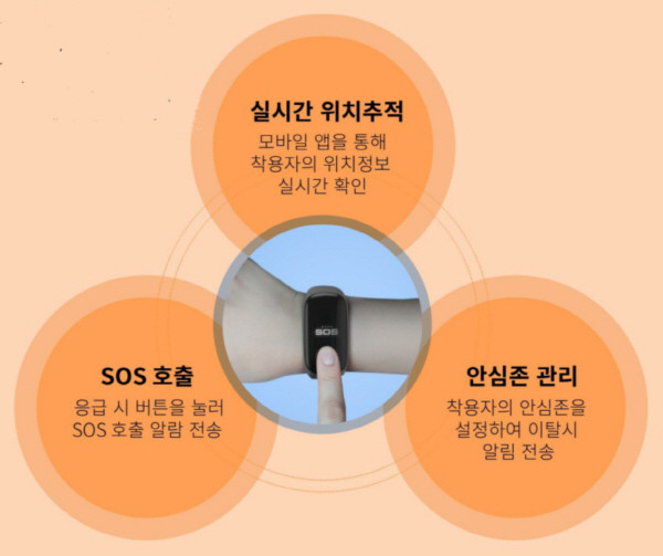 손목시계 형태의 안전단말기는 발달장애인도 손쉽게 착용할 수 있으며, 기기 착용자의 위치정보를 실시간으로 감지하고 이동경로를 기록해 보호자와 관제센터에 주기적으로 보내는 기능을 한다.