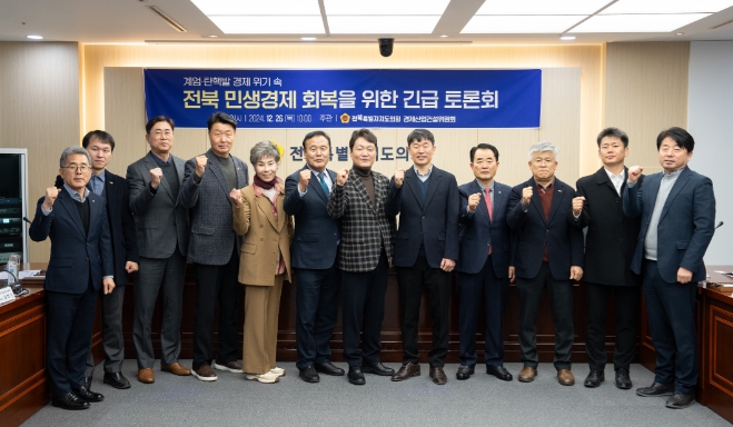 전북특별자치도의회 경제산업건설위원회는 26일 계엄·탄핵발 경제위기 속 전북 민생경제 회복을 위한 정책방향을 점검하고, 현장의 목소리를 청취하는 긴급 토론회를 개최했다.