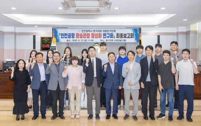 인천광역시 중구의회 의원연구단체인 ‘인천공항 환승관광 활성화 연구회’는 지난 27일 의회 소회의실에서 연구활동 성과를 공유하는 최종결과보고회를 개최했다고 밝혔다.