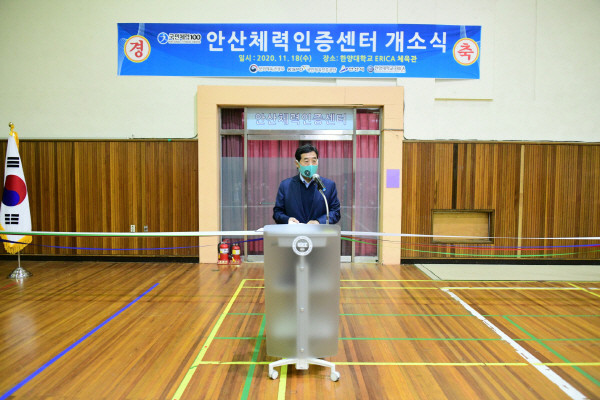 안산시(시장 윤화섭)는 한양대 ERICA캠퍼스 예체능대학 체육관에 설치한 ‘국민체력100 안산체력인증센터’ 개소식을 열었다고 19일 밝혔다.