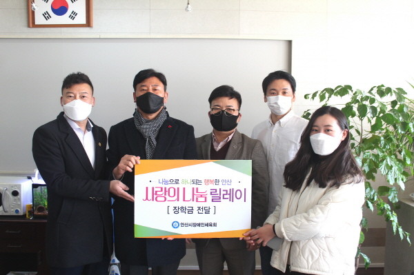 | ▲ 안산시장애인체육회, 안산 본원초에 장학금 전달…‘사랑의 나눔 릴레이’. |