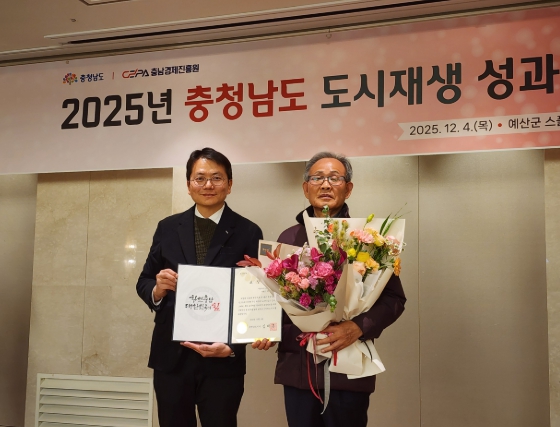 홍성군은 지난 4일 열린 ‘2025년 충남 도시재생 성과공유회’에서 광천읍 원촌마을 이두영 이장이 도시재생 업무 추진 유공으로 충청남도지사 표창을 수상했다고 밝혔다.