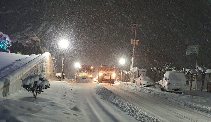 1월 6일부터 10일까지 주요도로 30개노선, 343km 제설작업을 위해 인원 274명 제설장비(제설기,살포기) 56대, 제설자재 408톤을 신속동원하여 제설작업 완료, 교통소통 및 사고예방에 기여하였다.