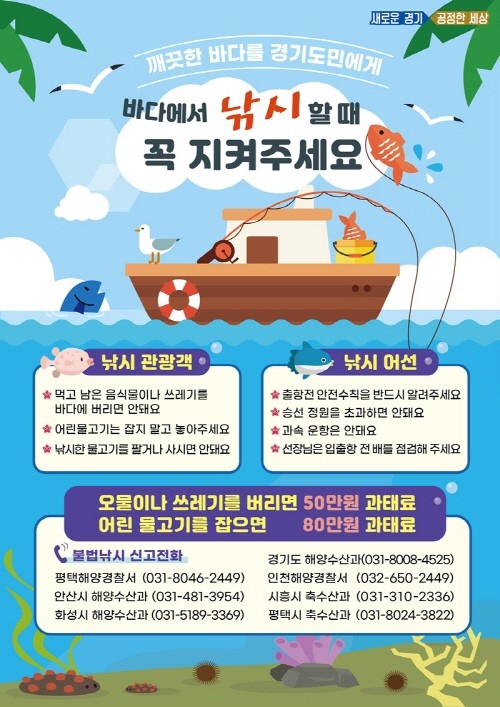 경기도가 청정계곡에 이어 ‘깨끗한 경기바다’ 만들기를 추진 중인 가운데 낚시레저보트와 낚시어선 3,901척을 대상으로 불법낚시행위 특별단속을 추진한다.