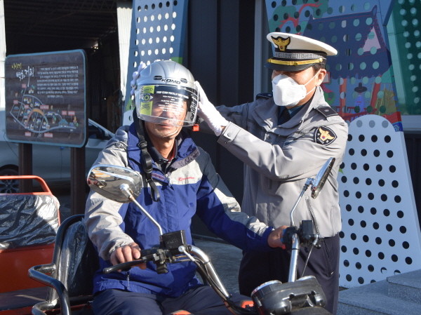 고흥 읍내파출소 김귀현 경위, 어르신들게 안전모 선물해