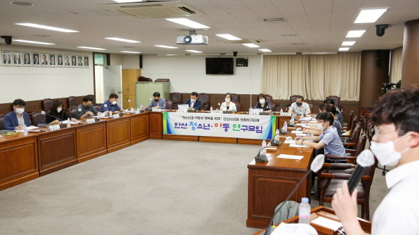 ‘안산 청소년·아동 연구모임’ 소속 이경애 김태희 김동수 이기환 나정숙 의원은 이날 의회 대회의실에서 용역수행업체와 안산시 교육청소년과, 안산시청소년협의회, 안산시청소년재단 관계자 등이 참석한 가운데 ‘안산시 청소년에 대한 정책 연구용역 중간보고회’를 열어 이 용역의 진행 상황을 점검했다.