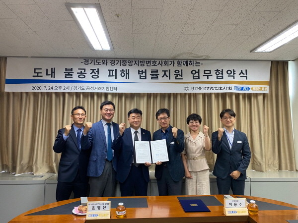 경기도와 경기중앙변호사회가 24일 가맹사업·대리점·대규모 유통·하도급 등 사업 전반에 걸친 불공정거래 예방과 피해구제를 위한 법률지원 업무협약을 체결했다.