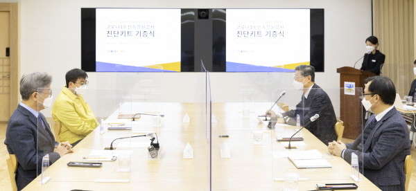 이효근 SD바이오센서 대표이사는 “집단감염이 취약한 요양시설이나 교정시설 같은 고위험시설에서 선제적으로 스크린 검사를 진행하면서 코로나 확산을 막는 데 힘이 되기를 바란다”며 “이번 코로나19 세계적 대유행 속에서 PCR진단키트와 신속항원 키트를 개발해 수출하며 많은 성과를 이뤘는데 성장과 함께 사회 공헌에 힘쓰는 기업으로 성장하겠다”고 말했다.