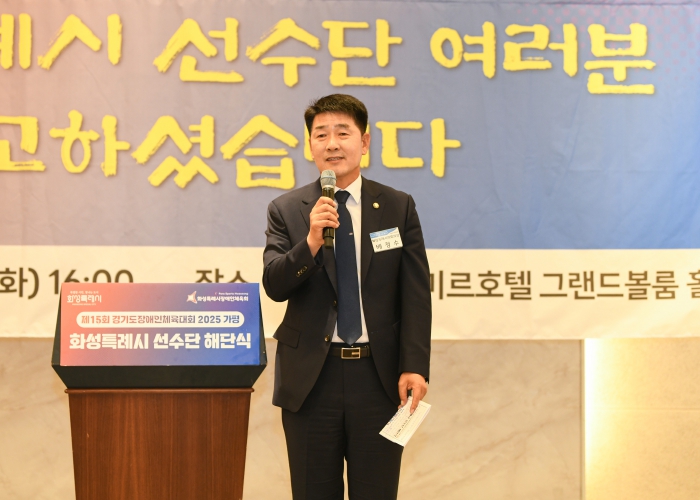 화성특례시의회는 24일, 호텔 푸르미르(안녕동)에서 열린 제15회 경기도 장애인체육대회 해단식에 참석해 선수단의 헌신과 열정을 격려했다.