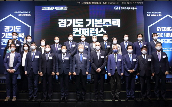 경기도와 경기주택도시공사(GH)는 25일 수원컨벤션센터에서 ‘경기도 기본주택 컨퍼런스’를 개최했다. 이 자리에는 아이너 옌센(Einar H. Jensen)주한덴마크 대사, 장현국 경기도의회 의장, 김홍걸.김승원.조정훈.용혜인 국회의원, 김명원.심규순.최만식 도의원, 곽상욱 경기도시장군수협의회장, 염태영 수원시장, 이재준 고양시장, 임병택 시흥시장, 안병용 의정부시장, 김상호 하남시장, 김보라 안성시장, 이항진 여주시장, 최용덕 동두천시장, 김종천 과천시장, 이헌욱 경기주택도시공사 사장, 지규현 한국주택학회 회장 등이 참석했다.