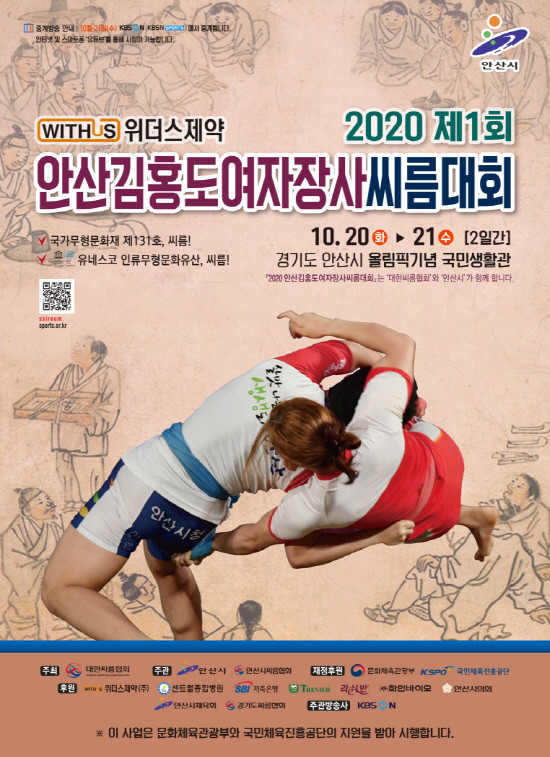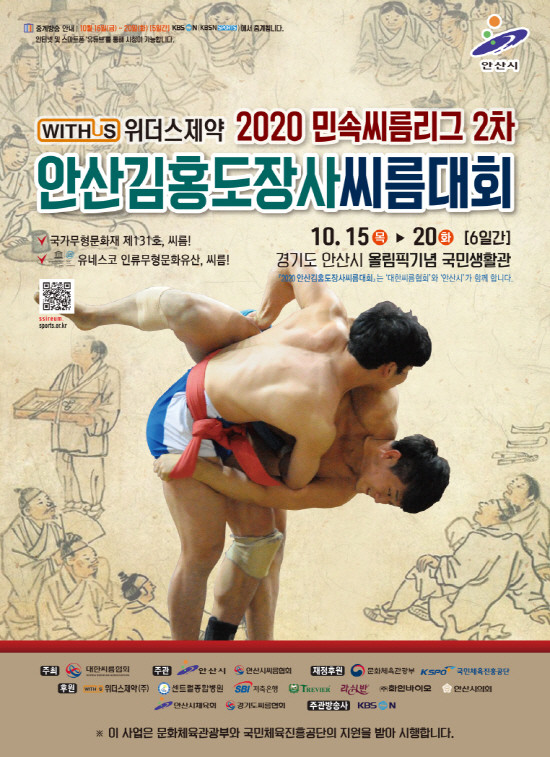 단원 김홍도의 도시 안산시(시장 윤화섭)에서 15일 개최되는 ‘위더스제약 2020 민속씨름리그 2차 안산 김홍도장사 씨름대회 및 제1회 안산 김홍도여자장사 씨름대회’가 7일간의 열전에 돌입한다.