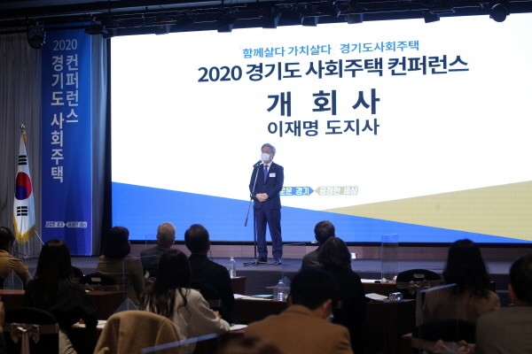 경기도는 사회주택에 대한 국내외 사례를 공유하고, 사회주택의 필요성과 중요성을 널리 알리기 위해 6일 노보텔 앰버서더 수원에서 ‘2020년 경기도 사회주택 컨퍼런스’를 개최했다. 이 자리에는 이재명 지사를 비롯해 진용복 경기도의회 부의장, 이헌욱 경기주택도시공사 사장, 사회주택ㆍ사회적경제ㆍ사회적금융 관계자 등 50여명이 참석했다.