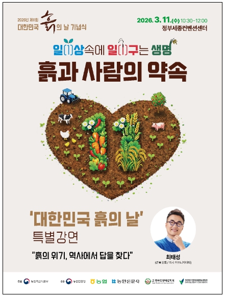 흙의 날은 농업‧농촌‧농민의 ‘3농’과 ‘열 십(十)’과 ‘한 일(一)’이 합쳐 ‘흙(土)이 된다는 의미를 담아 3월 11일로 정했으며, 올해로 11번째를 맞이했다. 특히, 올해는 숫자 11을 모티브로 ‘일(1)상 속에 일(1)구는 생명, 흙과 사람의 약속’이라는 주제로 기념식을 개최하여, 흙이 우리 삶과 직결된 생명의 근원임을 되새겼다.