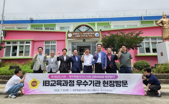 충남도의회 교육위원회는 10일 제주도의회 교육위원회와 제주지역 IB(국제바칼로레아) 공교육 대표기관인 표선고등학교와 풍천초등학교를 방문했다.
