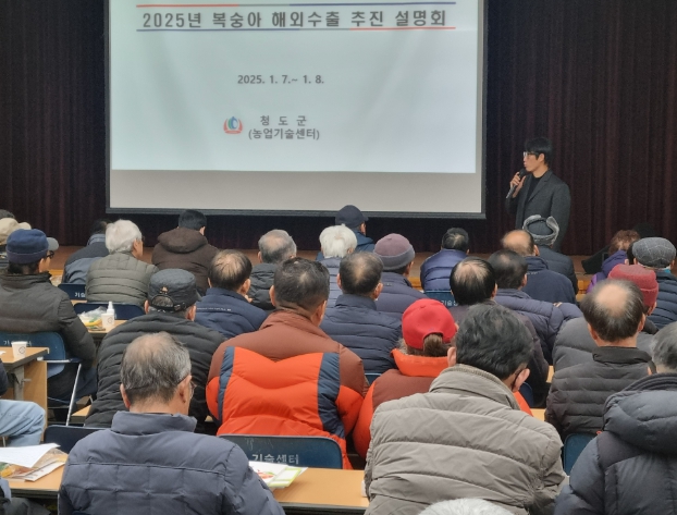 청도군은 지난 7일 및 8일 농업기술센터 대회의실에서 ‘한국복숭아수출연합회’와 공동으로 청도 관내 복숭아 생산농가 및 관계자가 참석한 가운데 2025년 복숭아 해외수출 추진을 위한 설명회를 가졌다.