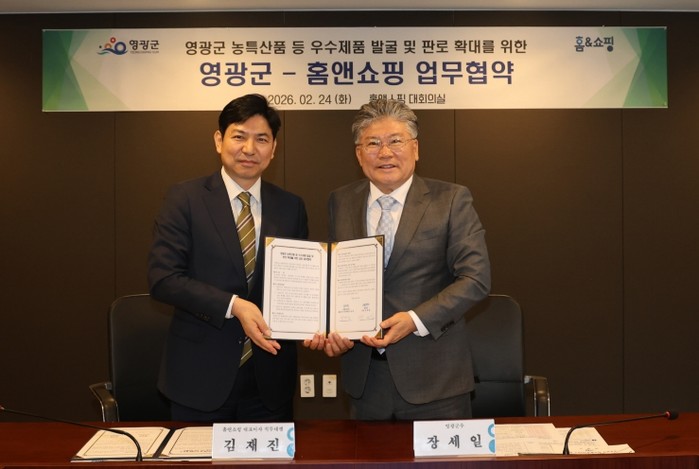 영광군은 지난 24일 ㈜홈앤쇼핑과 영광군의 우수 농특산물 판로 확대와 중소기업·소상공인 우수제품 발굴을 위한 업무협약(MOU)을 체결했다.
