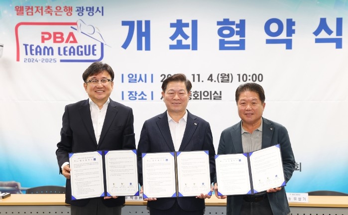 시는 4일 오전 시청 중회의실에서 광명시, 광명시체육회, PBA가 프로당구대회를 오는 11월 19일부터 27일까지 9일간 광명시민체육관에서 개최하기로 협약을 체결했다고 밝혔다.