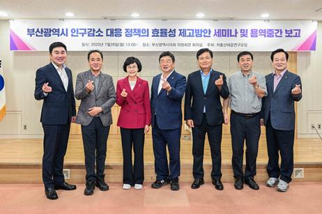 부산광역시의회 의원연구단체 '저출산대응 정책연구모임'(대표 최영진 의원, 사하구1)은 7월 28일 시의회에서 ‘부산 인구 소멸 대응과 정주 여건 마련 방안’ 세미나를 개최하고, 부산의 인구감소 문제와 청년 정착을 위한 해법을 모색하는 자리를 마련했다.