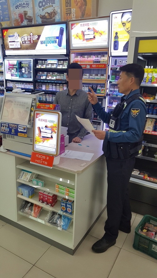 | ▲ 자체 제작 홍보물 가지고 녹동 관내 편의점 방문 |