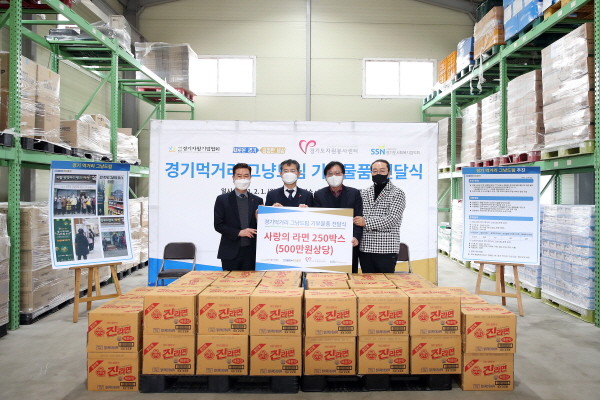 기탁된 라면 250박스는 ‘경기 먹거리 그냥드림 코너’ 운영 푸드마켓 3곳을 통해 긴급생계위기 대상자 등 생활에 어려움을 겪고 있는 사람들에게 전달될 예정이다.