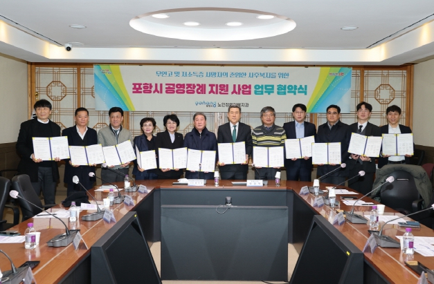 포항시는 20일 시청 중회의실에서 포항시읍면동지역사회보장협의체 및 포항의료원, 포항성모병원, 포항세명기독병원 장례식장 등 10개 장례식장과 ‘포항시 공영 장례 지원사업 업무 협약’을 체결했다.
