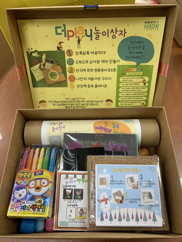 ‘안산형 놀이문화 조성 프로젝트’를 통해 제작된 놀이키트에는 눈사람 만들기, 북아트 등 아이들이 놀이를 즐길 수 있는 소품들이 담겨 있다.