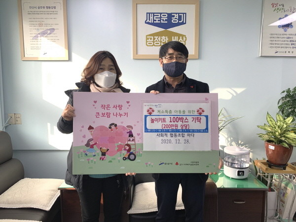 | ▲ 안산시, 사회적협동조합 하다로부터 놀이키트 기탁 받아 |