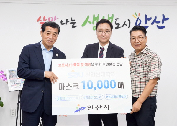 안산시(시장 윤화섭)는 10일 신안산대학교로부터 관내 저소득 고등학생을 위해 사용해 달라며 덴탈 마스크 1만장(187만원 상당)을 기탁 받았다고 밝혔다.