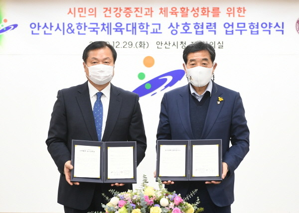 [프레스뉴스] 강보선 기자= 안산시(시장 윤화섭)는 29일 한국체육대학교와 상호협력 업무협약을 체결하고 안산시민의 건강증진 및 체육활성화를 위해 힘을 모으기로 했다.