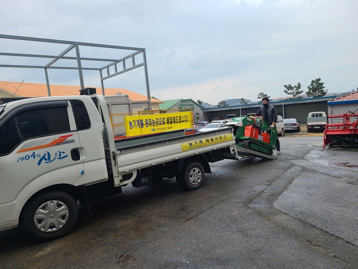 농가에서는 그동안 운송이 어려워 이용하지 못해 많은 애로를 겪었는데 전화 한번으로 영농현장까지 직접 농기계를 배달에서 회수까지 원스톱서비스로 매우 만족스러워하면서 앞으로도 더 많은 서비스를 당부하였다.