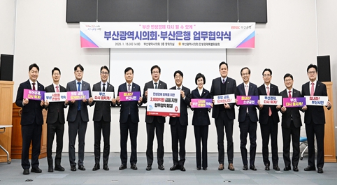 부산광역시의회는 오는 1월 15일 14시 부산시의회 2층 중회의실에서 민생경제 회복을 위한 업무협약을 BNK부산은행과 체결한다고 밝혔다.