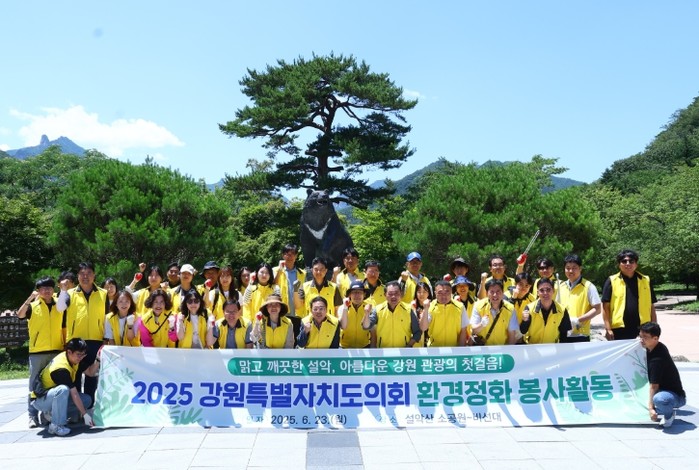 강원특별자치도의회는 6월 23일, 아름다운 속초 설악산국립공원 소공원~비선대 구간에서 뜻깊은 환경정화 봉사활동을 실시했다.