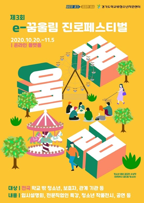 경기도가 10월 20일부터 11월 5일까지 학교 밖 청소년들에게 진로.직업 준비의 장을 제공하기 위한 ‘제3회 e-꿈울림 진로페스티벌’을 비대면 방식으로 개최한다.