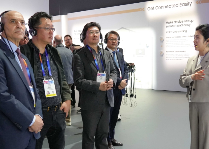 | ▲ 이상일 용인특례시장이 현지시간 8일 미국 라스베이거스에서 열린 'CES 2025'에서 삼성전자가 마련한 전시관을 방문해 기술에 대한 설명을 듣고있다. |