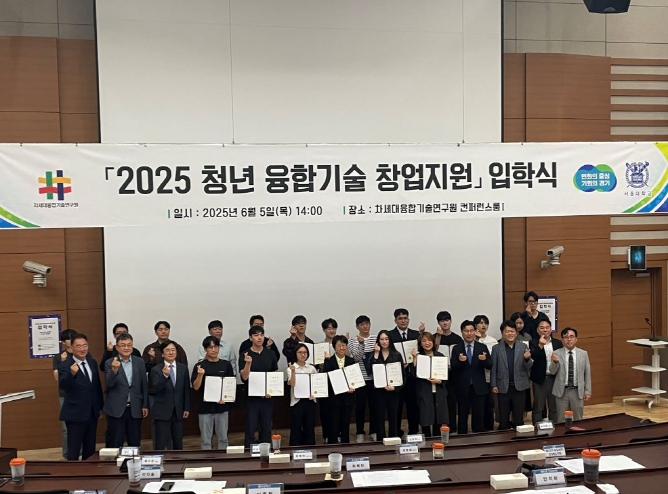 경기도와 차세대융합기술연구원이 5일 차세대융합기술연구원에서 ‘청년 융합기술 창업지원’ 입학식을 개최했다.