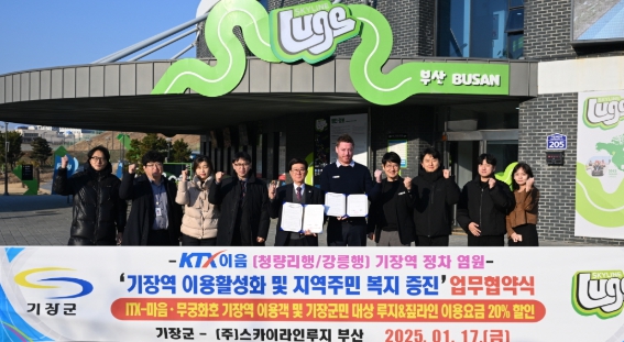 기장군은 17일 스카이라인루지부산(지사장 딘 존슨)과 ‘기장역 이용활성화 및 지역주민 복지증진을 위한 업무협약’을 체결하면서, 올해 KTX-이음 기장역 유치 활동에 첫 신호탄을 쏘았다고 밝혔다.