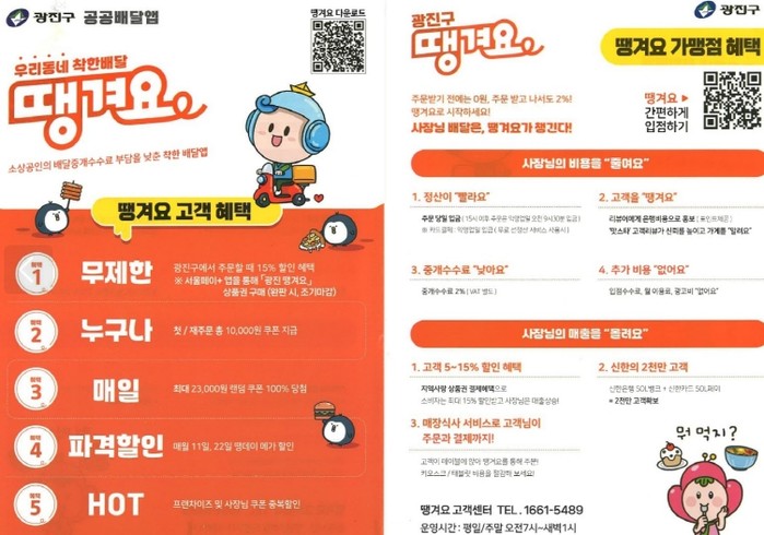 15% 할인된 금액으로 구매 가능한 광진땡겨요상품권은 광진형 공공배달앱 ‘땡겨요’에 등록된 가맹점에서 사용할 수 있다.
