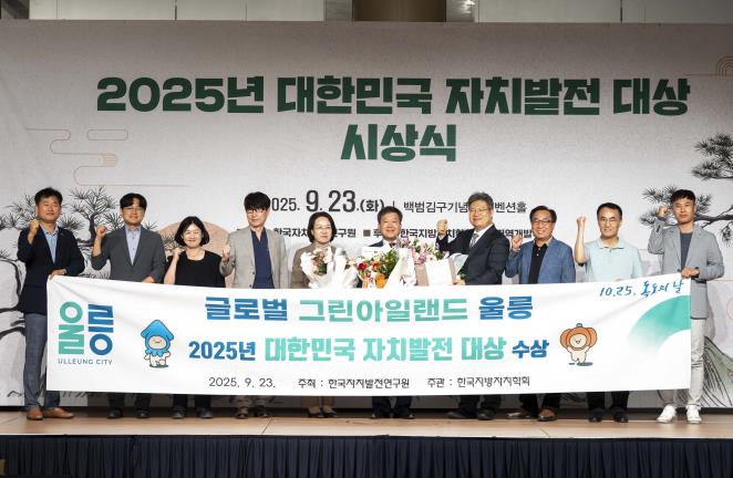 울릉군은 지난 23일 행정안전부 산하 (사)한국자치발전연구원이 주최한 ‘2025년 대한민국 자치발전 대상’을 수상했다.