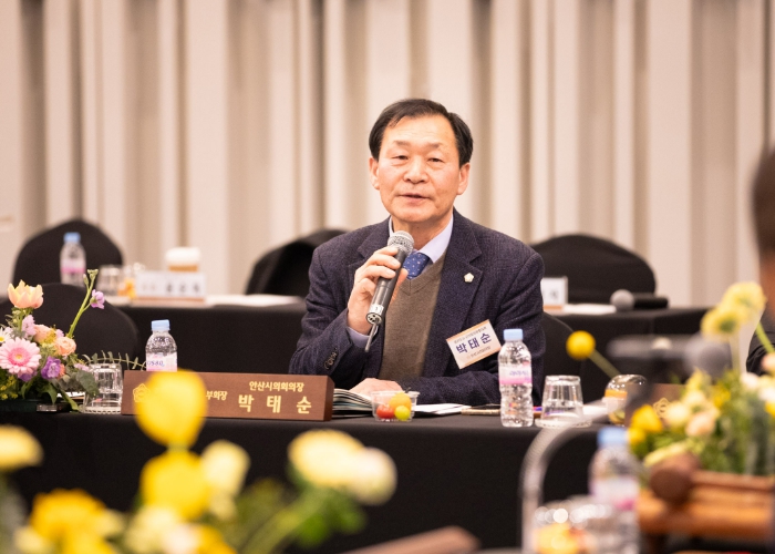 | ▲ 14일 양평군 ‘소노휴 양평’에서 진행된 경기도시군의회의장협의회 제175차 정례회의에 참석한 안산시의회 박태순 의장의 모습. |