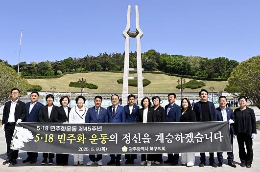 광주 북구의회가 제45주년 5·18민주화운동 기념일을 맞아 8일 국립5·18민주묘지를 찾아 민주화를 위해 희생하신 분들의 넋을 기리며 참배했다.
