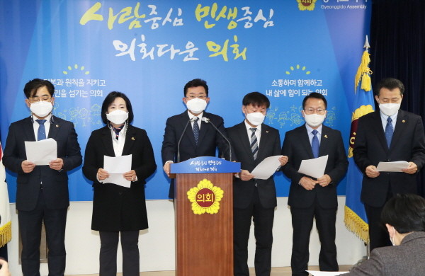 [프레스뉴스] 김대일 기자= 경기도의회 더불어민주당(대표의원 박근철, 의왕1)은 13일(수) 경기도의회 브리핑룸에서 기자회견을 열고, 원격수업 장기화로 어려움을 겪고 있는 사립유치원에 대한 시급한 지원 대책마련을 경기도교육청에 촉구했다.