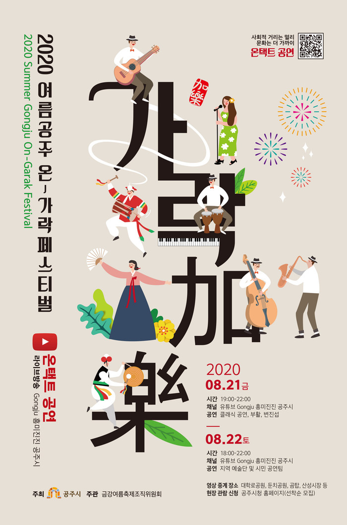 충남 공주시(시장 김정섭)는 오는 21일부터 2일간 고마 아트센터 일원에서 2020여름공주 ‘온-가락 페스티벌’을 개최한다고 12일 밝혔다.