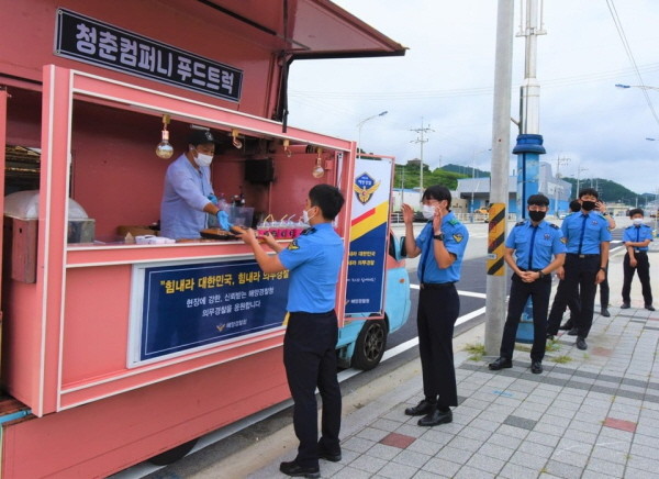 이번 행사는 의무경찰 41명이 참석하여 이뤄졌으며 코로나 19 방역‧예방 수칙을 철저히 준수하여 진행됐고 근무 활력을 높이고 사기진작을 위해 경찰서, 함정, 파출소 의무경찰들에게 푸드트럭을 지원하여 핫도그와 에이드 등 먹거리를 제공하였으며, 참여하지 못한 의무경찰들에게는 쿠키, 더치커피 등 대체상품을 제공했다.