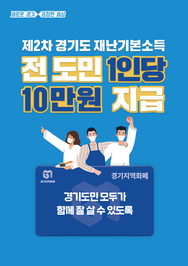 경기도는 도민 1인당 10만원씩 소멸성 지역화폐로 지급한다. 지급 대상은 내국인 1,341만 명과 등록외국인과 거소 신고자 58만 명을 포함한 약 1,399만 명이다.