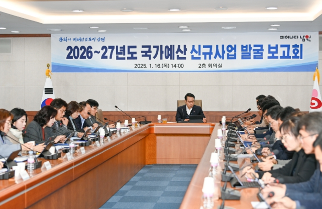 남원시가 16일 최경식 남원시장 주재로 부시장과 국소장, 전 부서장이 참석한 가운데 2026년 국가예산의 선제적 확보 대응을 위한 신규사업 발굴보고회를 개최했다.