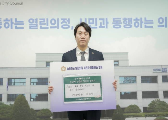 안양시의회 박준모 의장은 8월 2일, 광복 80주년을 맞아 시민과 함께하는 ‘손글씨 인증샷 릴레이’ 캠페인에 참여했다.